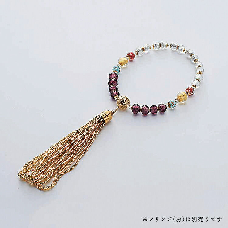 おしゃれな数珠です。イタリアの職人がハンドメイドでヴェネチアンガラスのとんぼ玉から手作りしました。別売りのかわいいフリンジと組み合わせてお使いください。