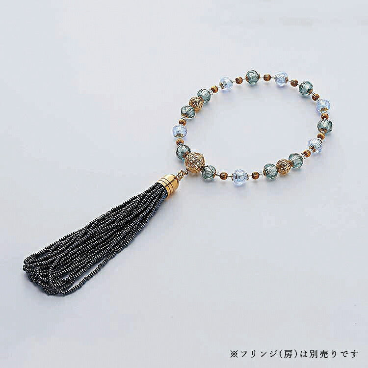 おしゃれな数珠です。イタリアの職人がハンドメイドでヴェネチアンガラスのとんぼ玉から手作りしました。別売りのかわいいフリンジと組み合わせてお使いください。