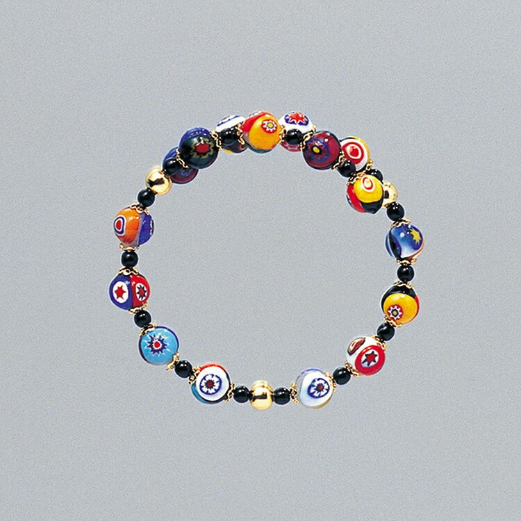 おしゃれな数珠ブレスレットです。イタリアの職人がハンドメイドでヴェネチアンガラスのとんぼ玉を手作りしました。フリーサイズなので贈り物にもおすすめです。