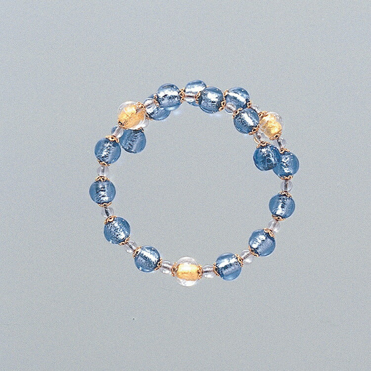 おしゃれな数珠ブレスレットです。イタリアの職人がハンドメイドでヴェネチアンガラスのとんぼ玉を手作りしました。フリーサイズなので贈り物にもおすすめです。