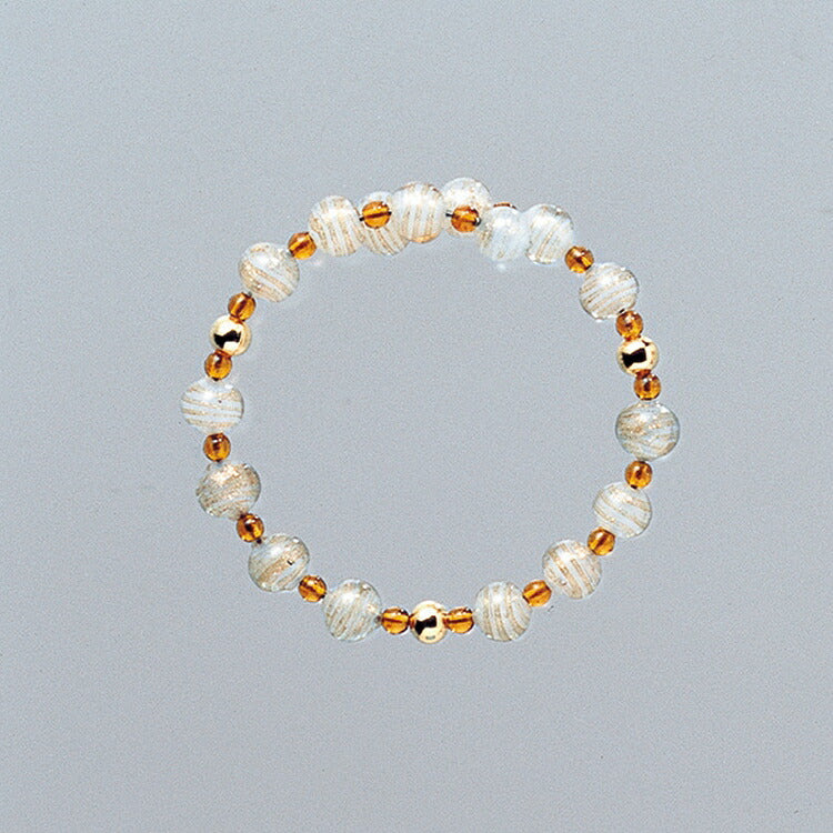 おしゃれな数珠ブレスレットです。イタリアの職人がハンドメイドでヴェネチアンガラスのとんぼ玉を手作りしました。フリーサイズなので贈り物にもおすすめです。