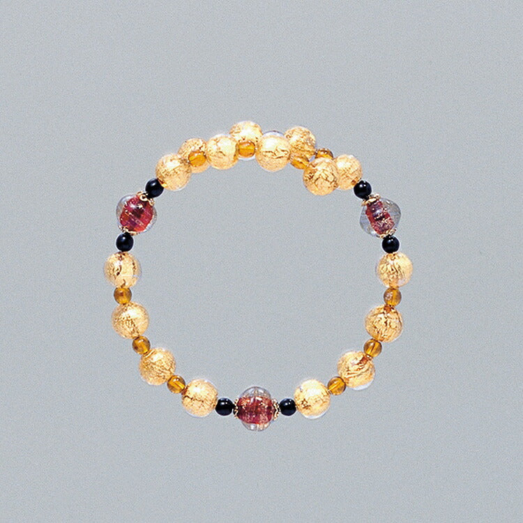 おしゃれな数珠ブレスレットです。イタリアの職人がハンドメイドでヴェネチアンガラスのとんぼ玉を手作りしました。フリーサイズなので贈り物にもおすすめです。