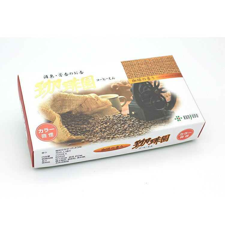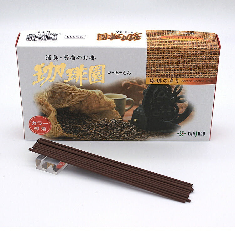 珈琲豆を炒ったような芳ばしい香りで、煙が少ないタイプのお線香「珈琲園」。