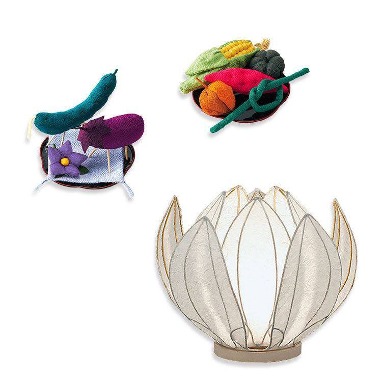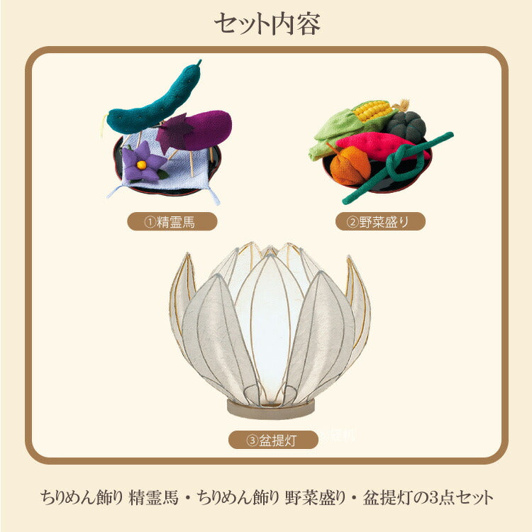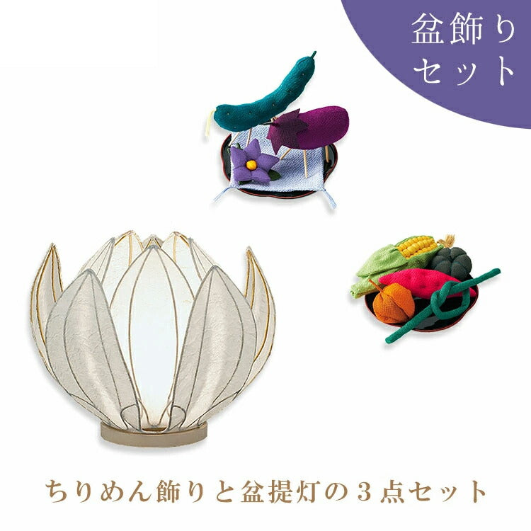 お供え 『 盆飾り盆提灯はなあかりホワイト ちりめんセット 』