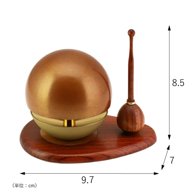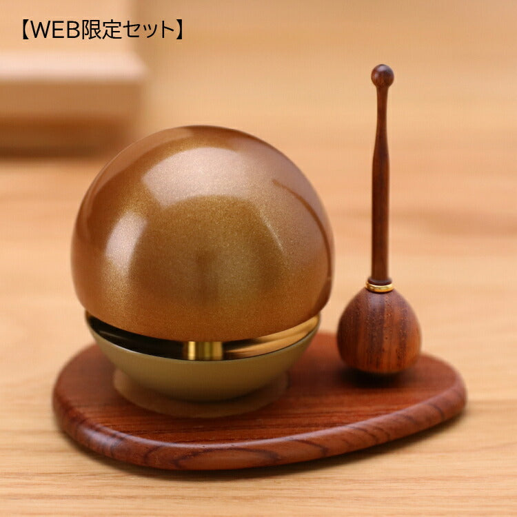 たまゆらりん・りん棒・りん台の3点セットです。丸くてかわいいおりんを鳴らすとユラユラ揺れて透き通った音色を奏でます。専用のりん棒とりん台のセットです。