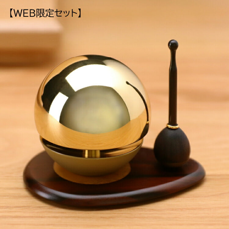 たまゆらりん・りん棒・りん台の3点セットです。丸くてかわいいおりんを鳴らすとユラユラ揺れて透き通った音色を奏でます。専用のりん棒とりん台のセットです。