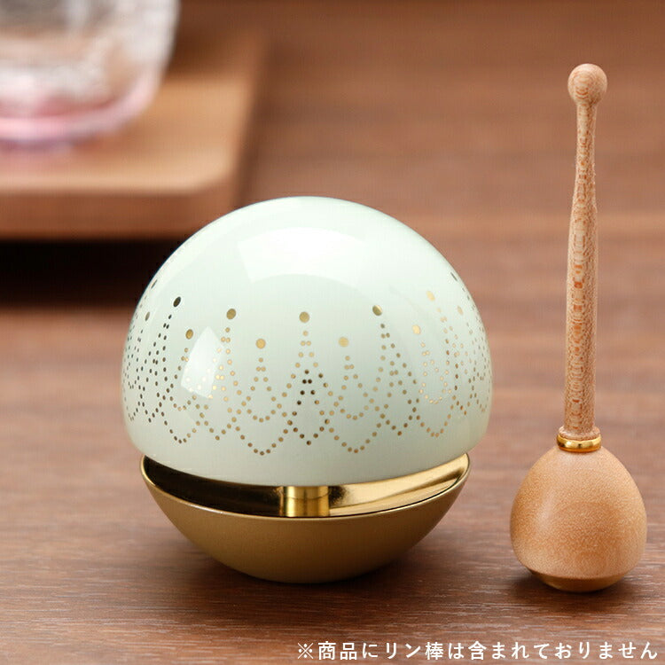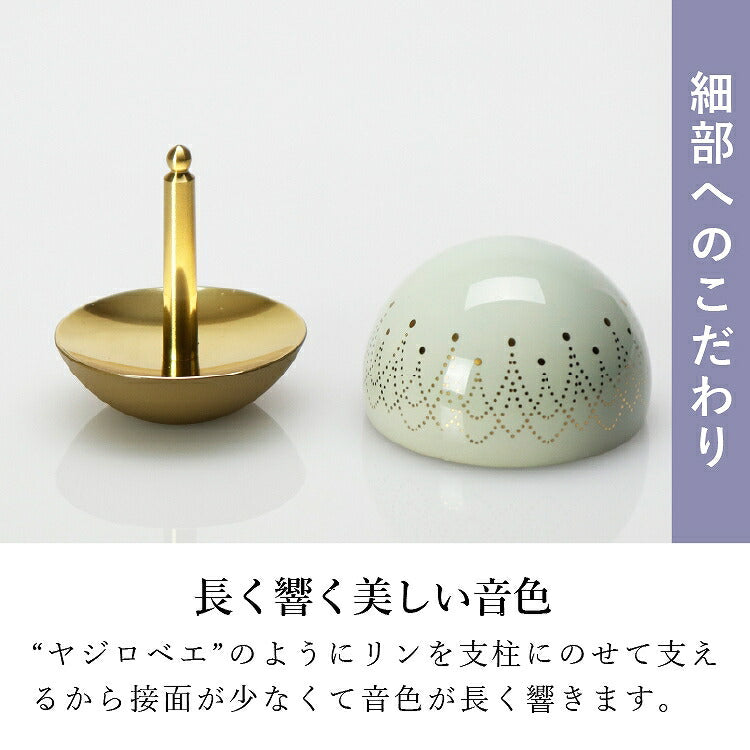 かわいい形のおりんです。おしゃれな模様と淡い色がモダン仏壇に合います。富山県の高岡銅器で制作された安心の日本製。チーンと澄んだ音色が心地よく響きます。