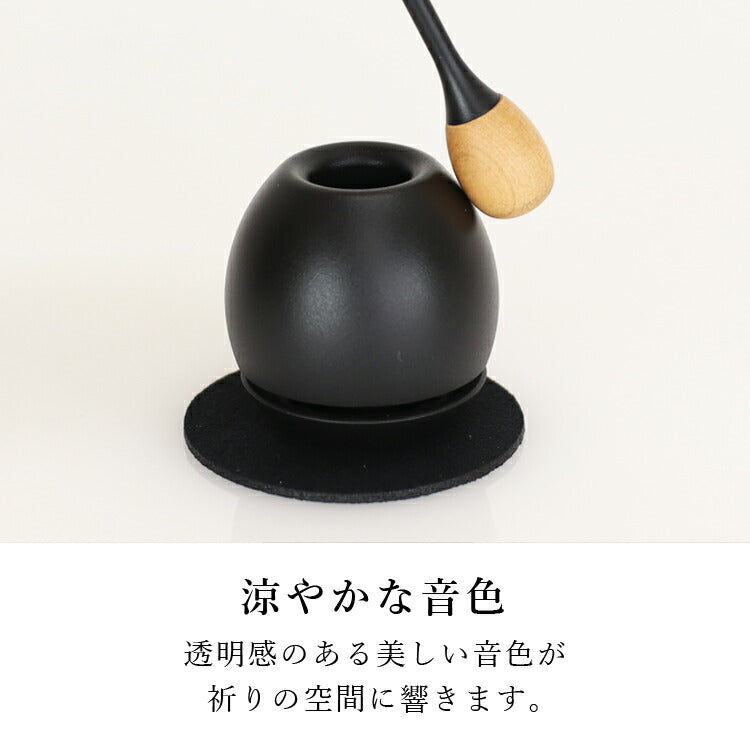 おしゃれなおりんです。高く涼やかな音色を奏でます。付属のりん棒を立てて収納できるので場所をとりません。モダン仏壇はもちろん、手元供養にもおすすめです。