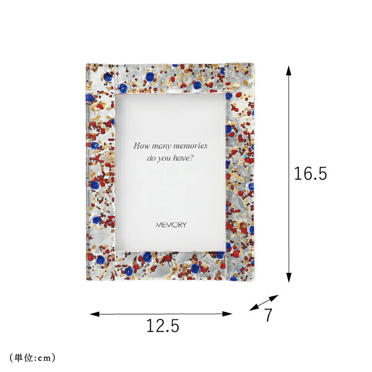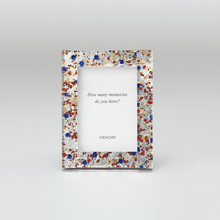 おしゃれなフォトフレームです。イタリアの職人がハンドメイドで制作したヴェネチアンガラスの写真立て。モダンな色柄が存在感を放ち、手元供養におすすめです。