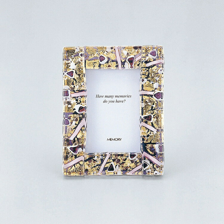 おしゃれなフォトフレームです。イタリアの職人がハンドメイドで制作したヴェネチアンガラスの写真立て。モダンな色柄が存在感を放ち、手元供養におすすめです。