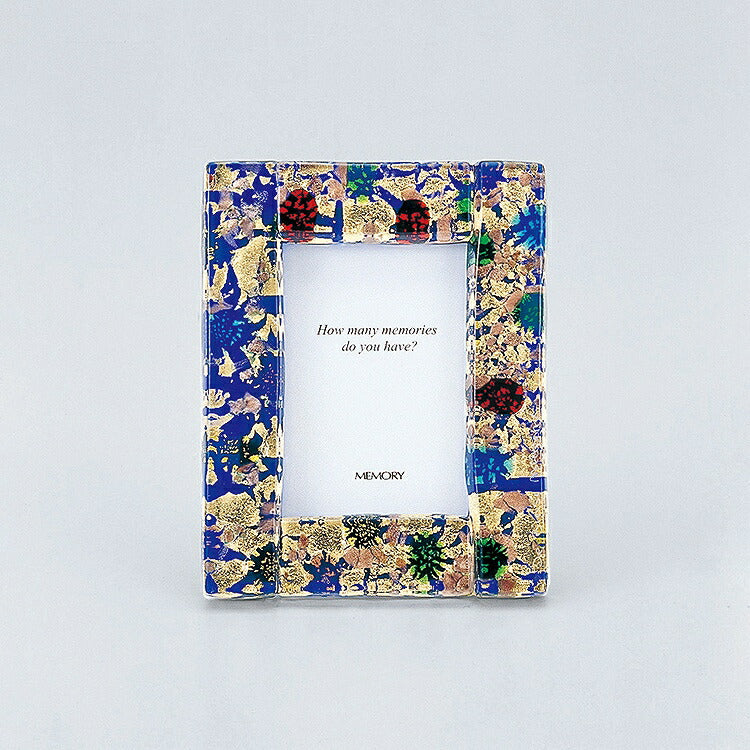 おしゃれなフォトフレームです。イタリアの職人がハンドメイドで制作したヴェネチアンガラスの写真立て。モダンな色柄が存在感を放ち、手元供養におすすめです。