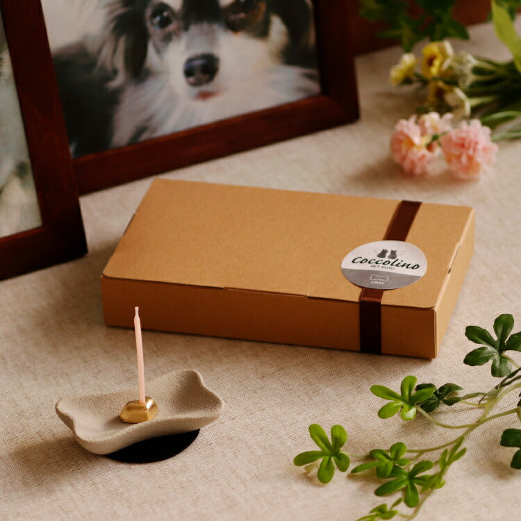 骨型のかわいい香皿と香立、線香ローソクの仏具セットです。犬ちゃんのペット供養にぴったり。お悔みの贈り物にもおすすめ。【コッコリーノ公式WEB限定商品】
