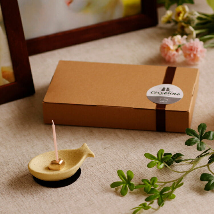 魚型のかわいい香皿と香立、線香ローソクの仏具セットです。猫ちゃんのペット供養にぴったり。お悔みの贈り物にもおすすめ。【コッコリーノ公式WEB限定商品】