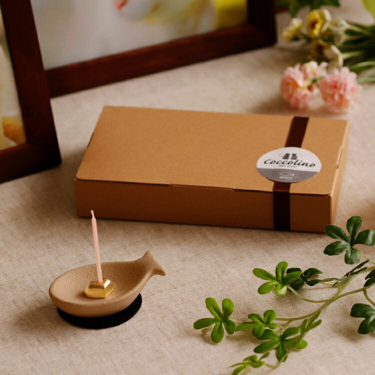 魚型のかわいい香皿と香立、線香ローソクの仏具セットです。猫ちゃんのペット供養にぴったり。お悔みの贈り物にもおすすめ。【コッコリーノ公式WEB限定商品】