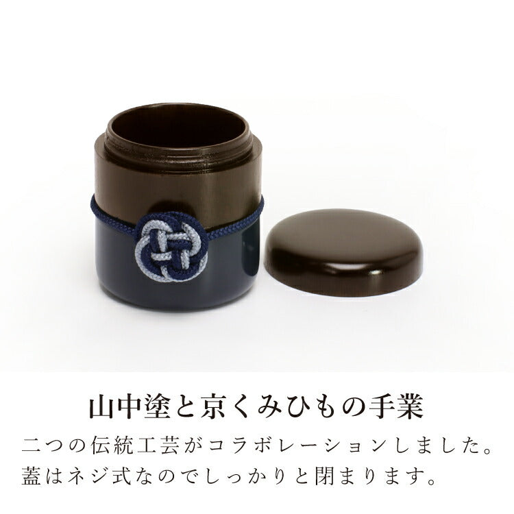 かわいいミニ骨壺です。山中塗と京くみひもを組み合わせた日本製ならではの和モダンデザイン。小さくて分骨や手元供養におすすめです。蓋はネジ式だから安心です。