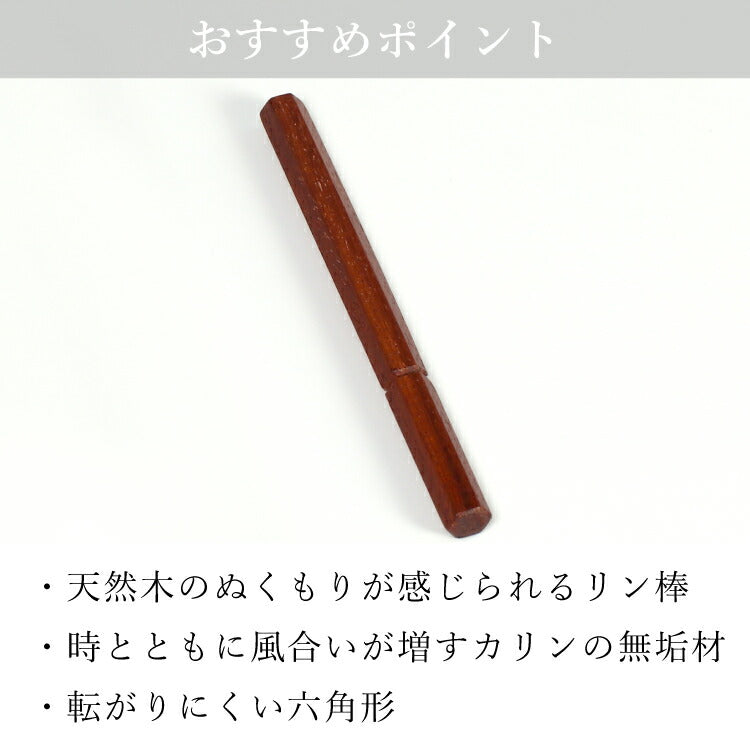 おしゃれなりん棒です。無垢材のなめらかな手触りが心地よいモダン仏具。六角形で転がりにくく、紛失する心配がありません。おりんとりん台は別売りです。
