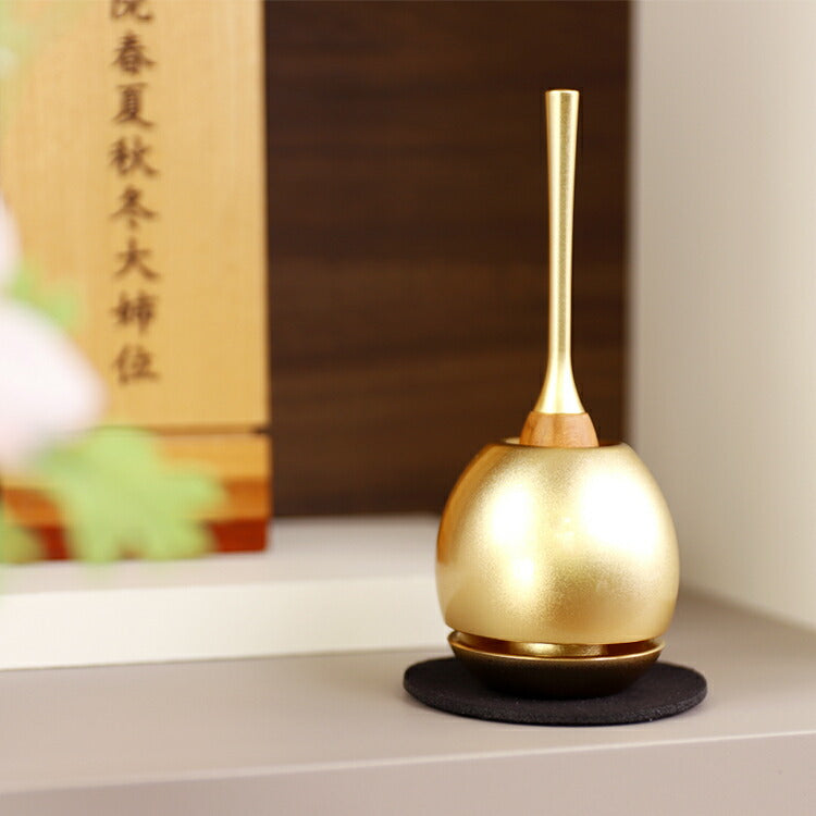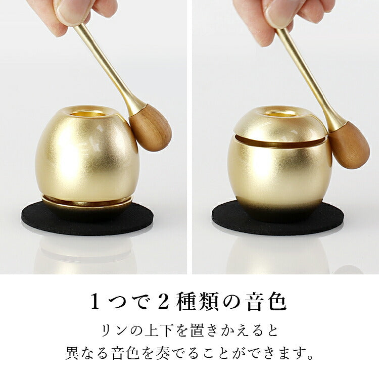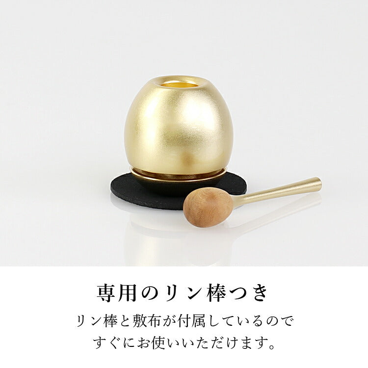 おしゃれなおりんです。高く涼やかな音色を奏でます。付属のりん棒を立てて収納できるので場所をとりません。モダン仏壇はもちろん、手元供養にもおすすめです。