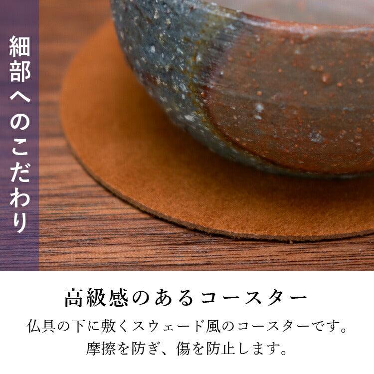 仏具に敷くマットです。スエードのように滑らかな手触りで上質感があり、高い摩耗耐久性で仏壇の傷を防止し、水分を吸収して輪じみを防ぎます。5枚セット。