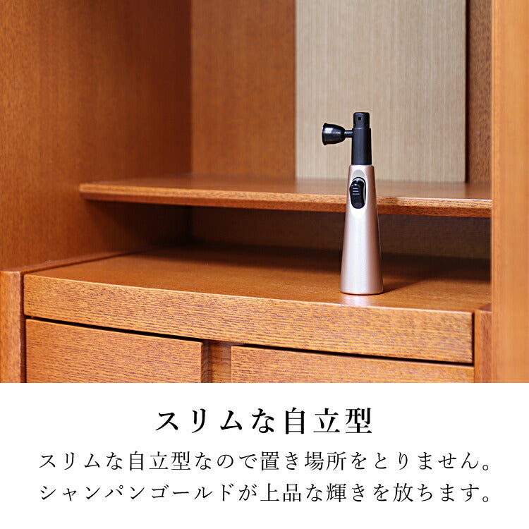 ガス注入式ライターです。ガスを充填してくり返し使用可能。立てて置けるので場所をとらず、ろうそくの火消しキャップ付きだから安心して仏壇にお参りできます。
