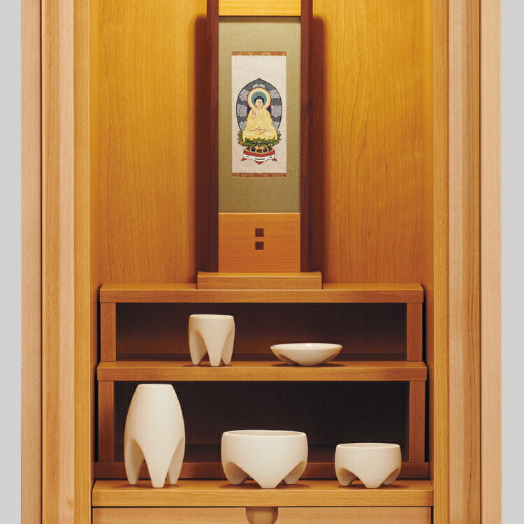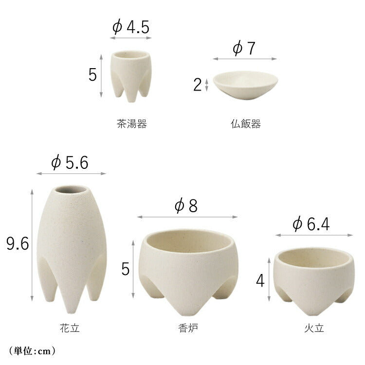 おしゃれなモダン仏具です。イタリアの職人が制作した陶器製の5点仏具セット。洗練されたフォルムがモダン仏壇にぴったり。小さい仏壇や手元供養におすすめです。