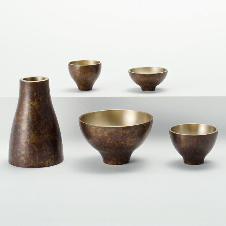 おしゃれなモダン仏具です。伝統工芸「高岡銅器」の日本製5点仏具セット。趣のある色はモダン仏壇になじみやすく、時とともに自然と風合いが増していきます。