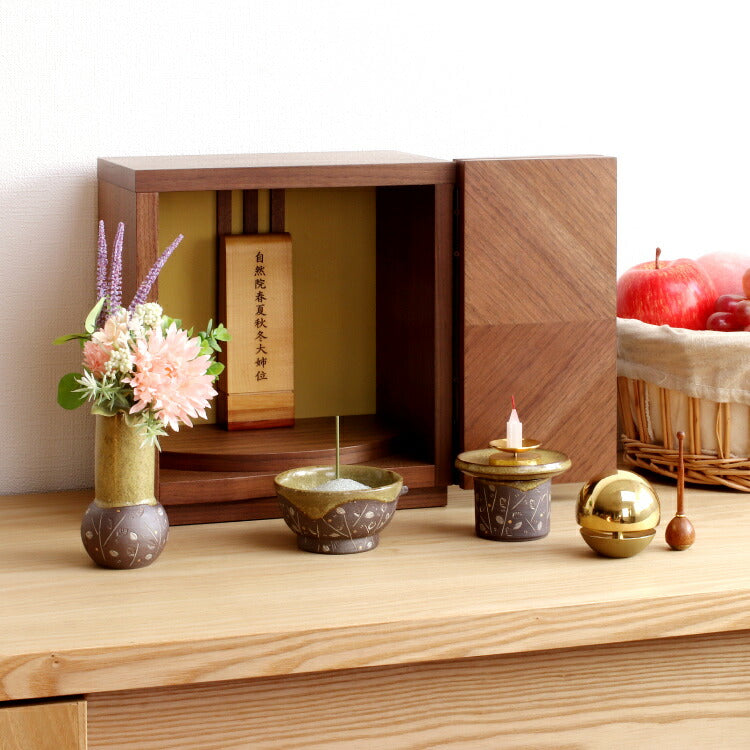 矢貼り模様がおしゃれなモダン仏壇です。リビングやマンションに置きやすいミニ仏壇。小さいながら日本製ならではの丁寧な仕上がりで、手元供養にもおすすめです。
