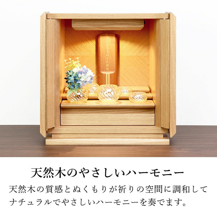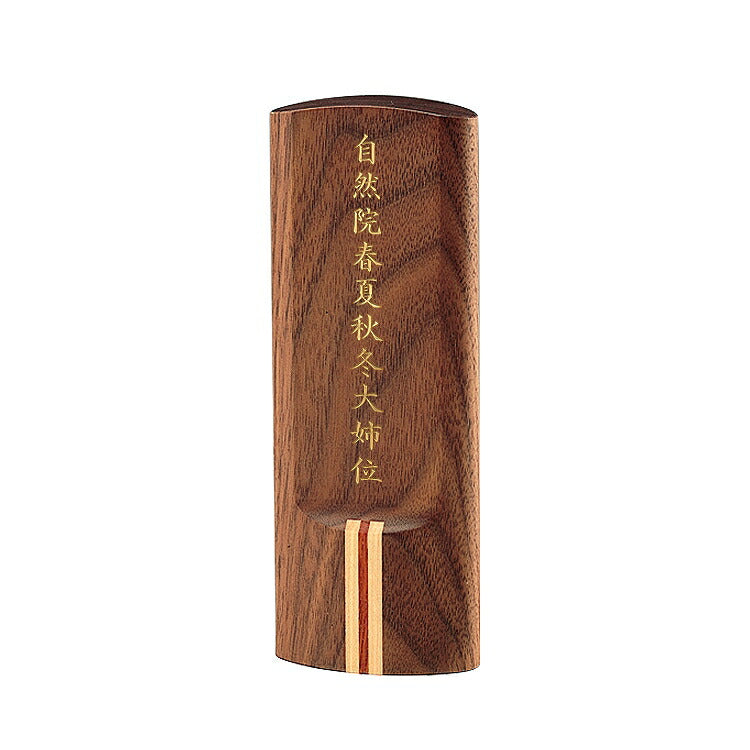 木製のモダン位牌です。おしゃれな寄せ木ラインがアクセント。コンパクトで夫婦位牌の名入れもできるので小さい仏壇や手元供養にもおすすめです。文字入れ代別途。