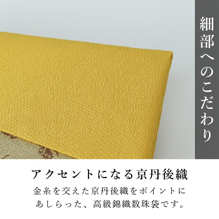 全ての宗派でお使いいただける数珠袋。数珠・念珠を入れて保管したり携帯したりするケースです。京丹後織が華やかでおしゃれ。留め具のない折りたたむ仕様です。