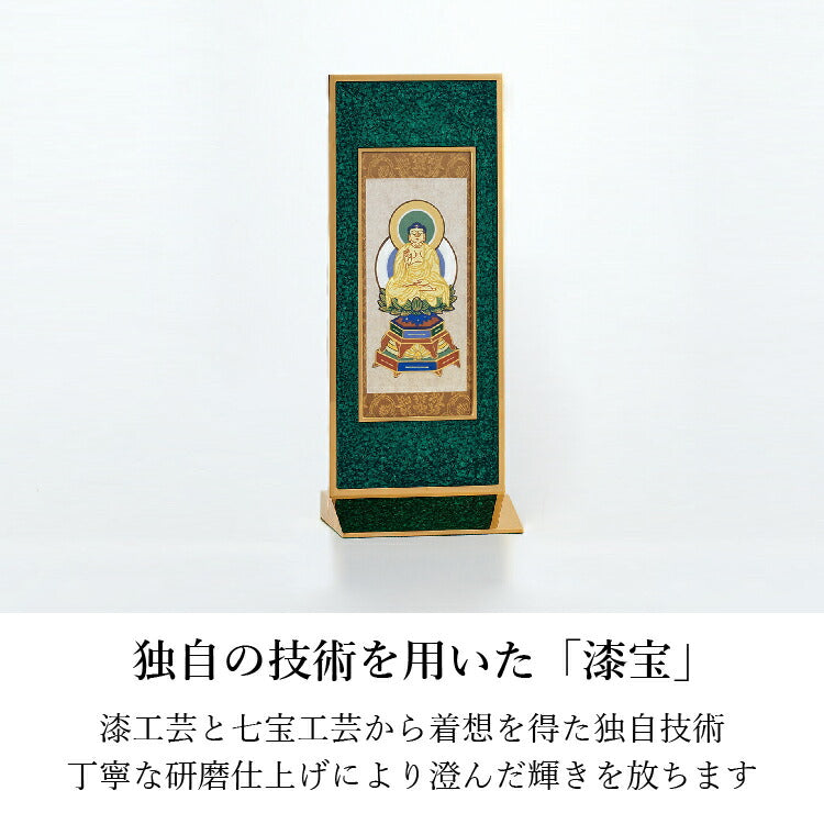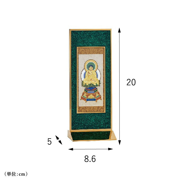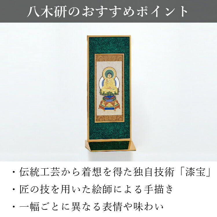 おしゃれなモダン掛軸です。高級感あふれる日本製のフレームに京都の絵師が手描きした仏画をセットしました。自立型だから安置が簡単でモダン仏壇にぴったりです。