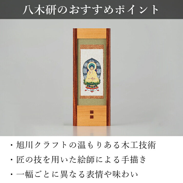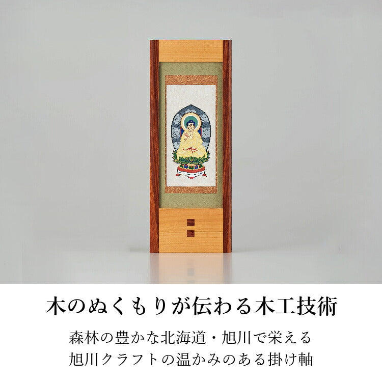 おしゃれなモダン掛軸です。天然木を用いた日本製のフレームに京都の絵師が手描きした仏画をセットしました。自立型だから安置が簡単でモダン仏壇にぴったりです。