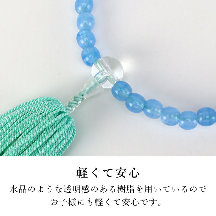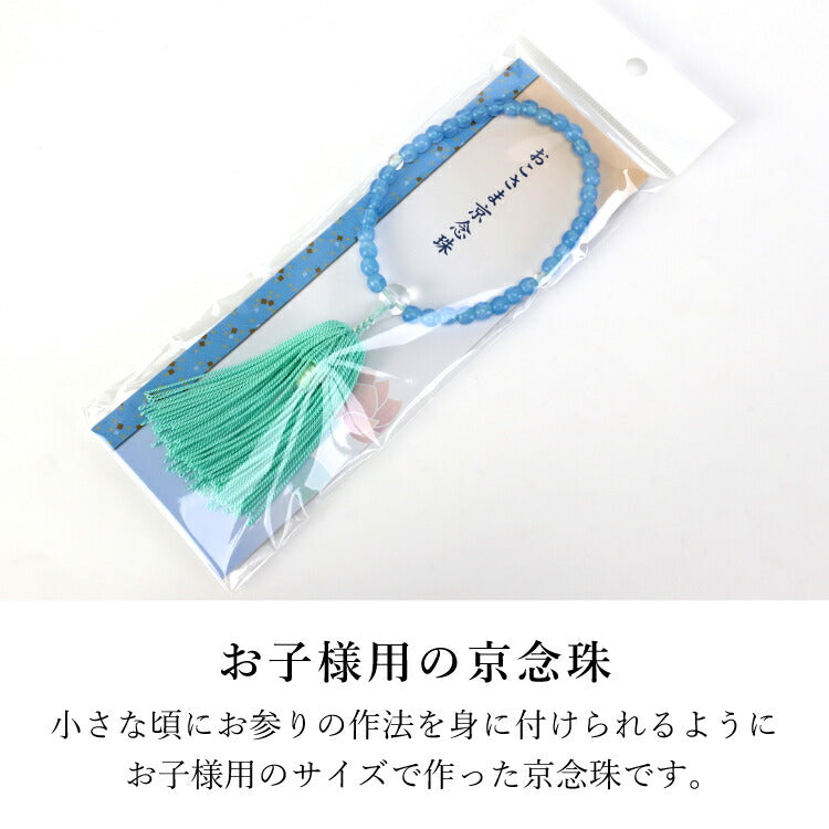 全ての宗派でお使いいただけるお子様用略式数珠です。京都の職人が手作りした「京念珠」なので丈夫で美しい仕上り。ラピスラズリを模した樹脂製で軽くて安心です。