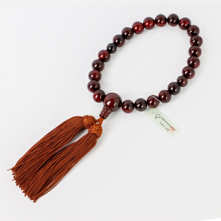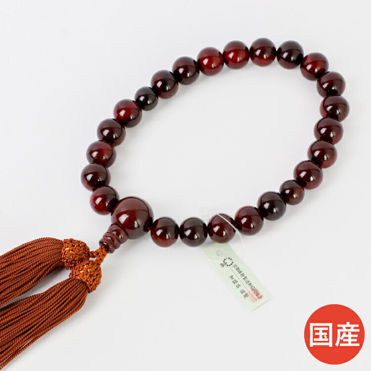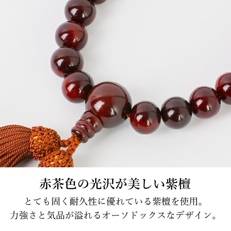 全ての宗派でお使いいただける男性用略式数珠です。京都の職人が丁寧に制作した「京念珠」なので丈夫で美しい仕上がり。銘木の紫檀は重硬で磨くと光沢が出ます。