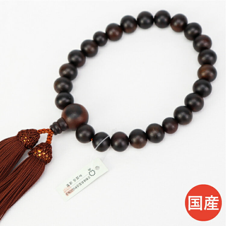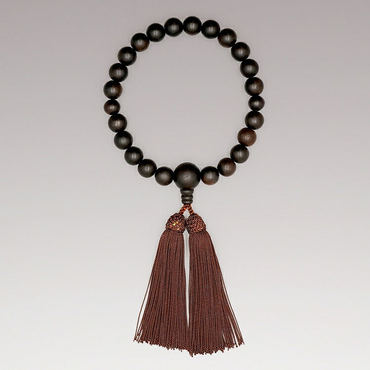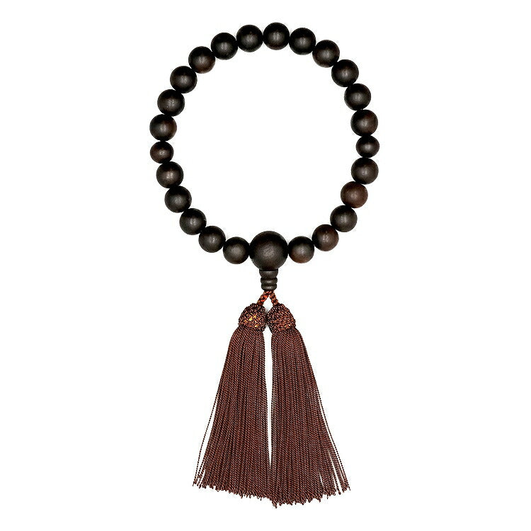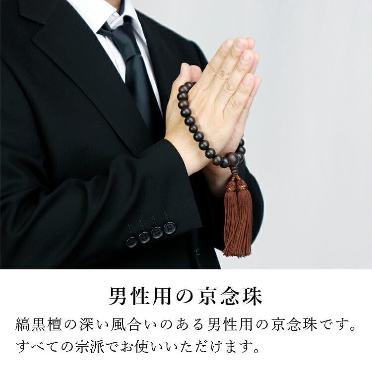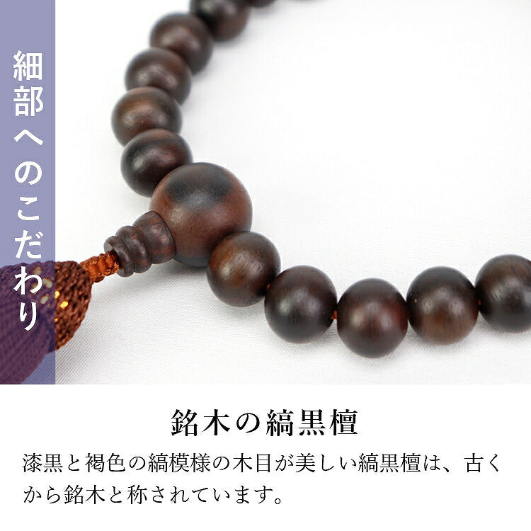 全ての宗派でお使いいただける男性用略式数珠です。京都の職人が丁寧に制作した「京念珠」。銘木の縞黒檀は耐久性に優れ、使うほどに艶が出て趣深くなります。
