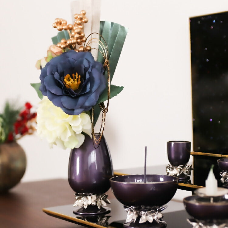 枯れない仏花です。おしゃれな造花なのでインテリアに馴染み、そのまま仏壇にお供えできて手間がかかりません。お盆や法事の贈り物としてもご利用いただけます。