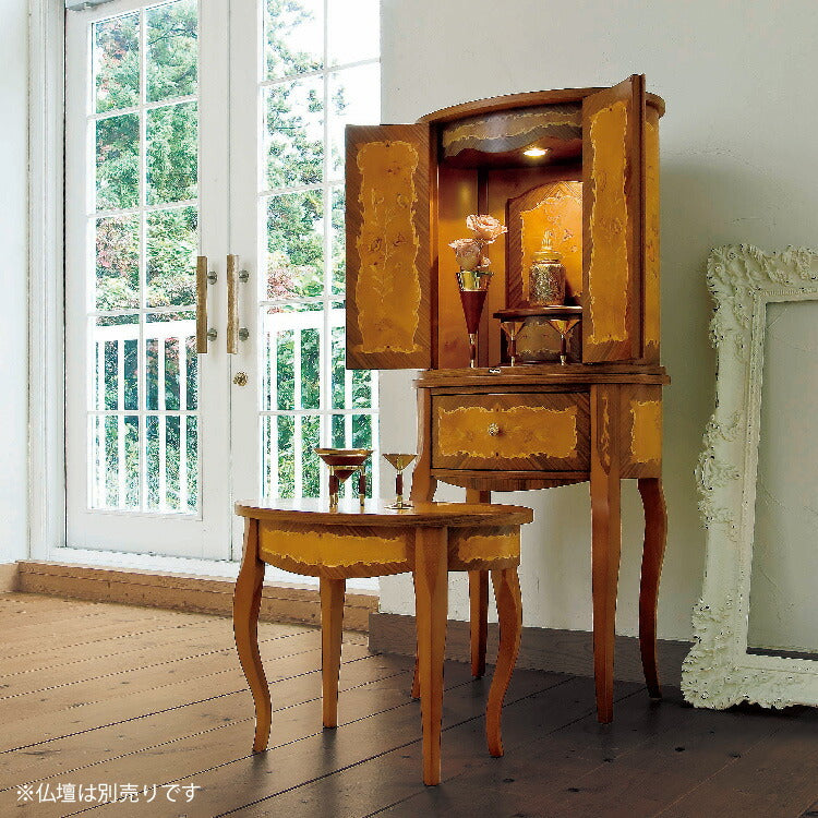 イタリア製のおしゃれな経机です。モダン仏壇におすすめ。お盆や法事の供養机だけでなく、普段からお供えの供物台やリビングの小さい机としてお使いいただけます。