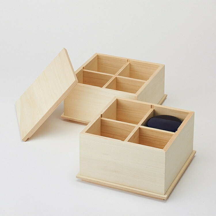 桐箱のケースです。桐は調湿性、防腐、防虫効果に優れており、別売りの骨壺「花かご」「星かご」「風かご」「春かご」「月かご」「空かご」を8つ収められます。