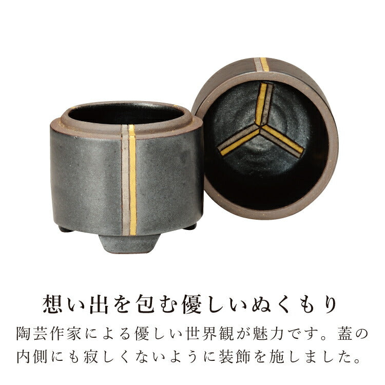 かわいいミニ骨壺です。日本製ならではの丁寧な手業で内側にも装飾を施しました。分骨したり、おしゃれな遺品ケースにしたりできます。手元供養にもおすすめです。