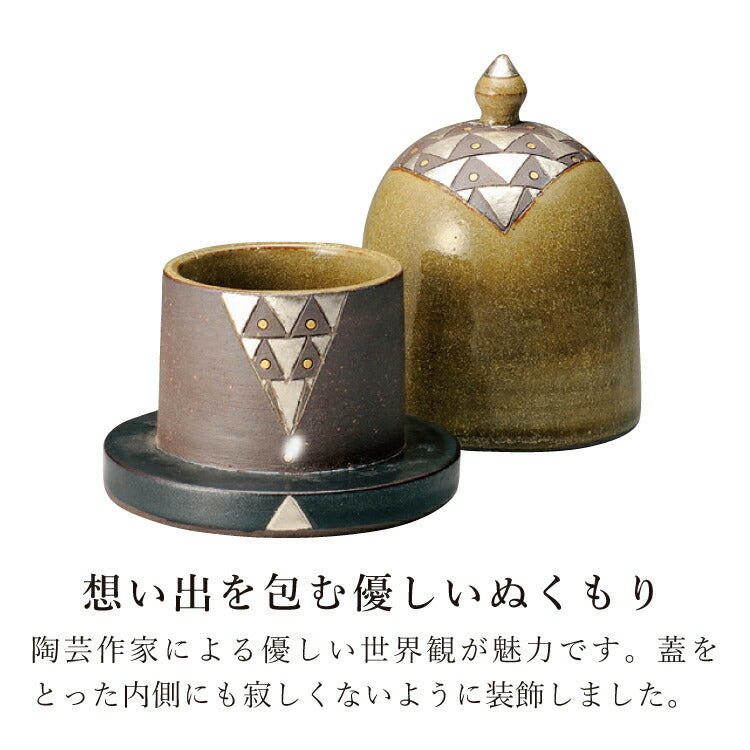 かわいいミニ骨壺です。日本製ならではの丁寧な手業で内側にも装飾を施しました。分骨したり、おしゃれな遺品ケースにしたりできます。手元供養にもおすすめです。