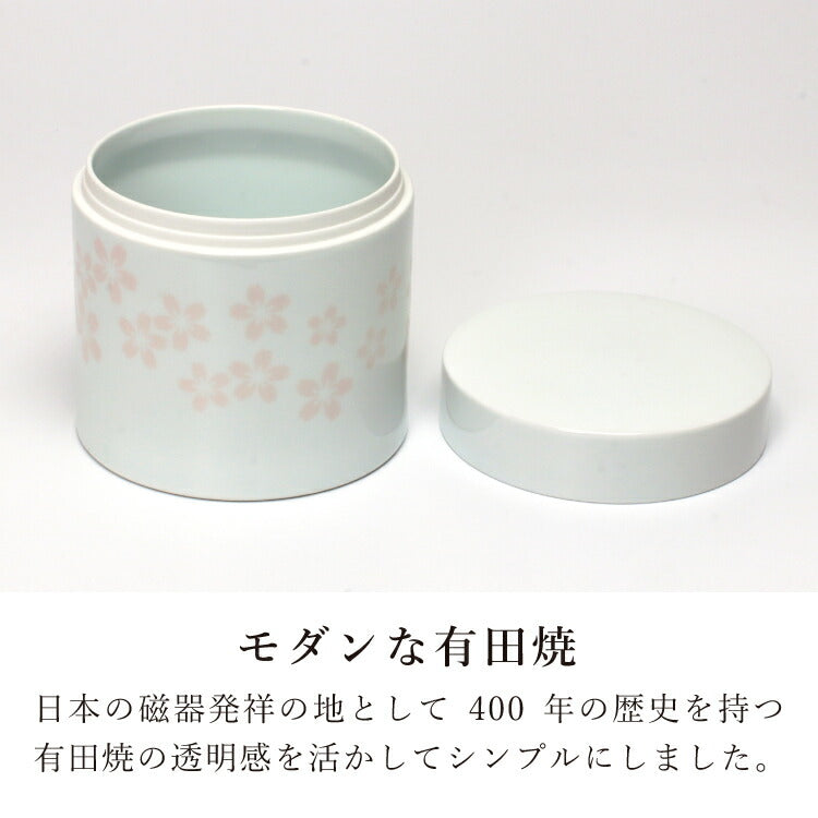 かわいい骨壺です。伝統工芸「有田焼」で制作した安心の日本製。シンプルでおしゃれな模様に彩られ、分骨用の骨壺や遺品の入れ物として大切な人をお祀りします。